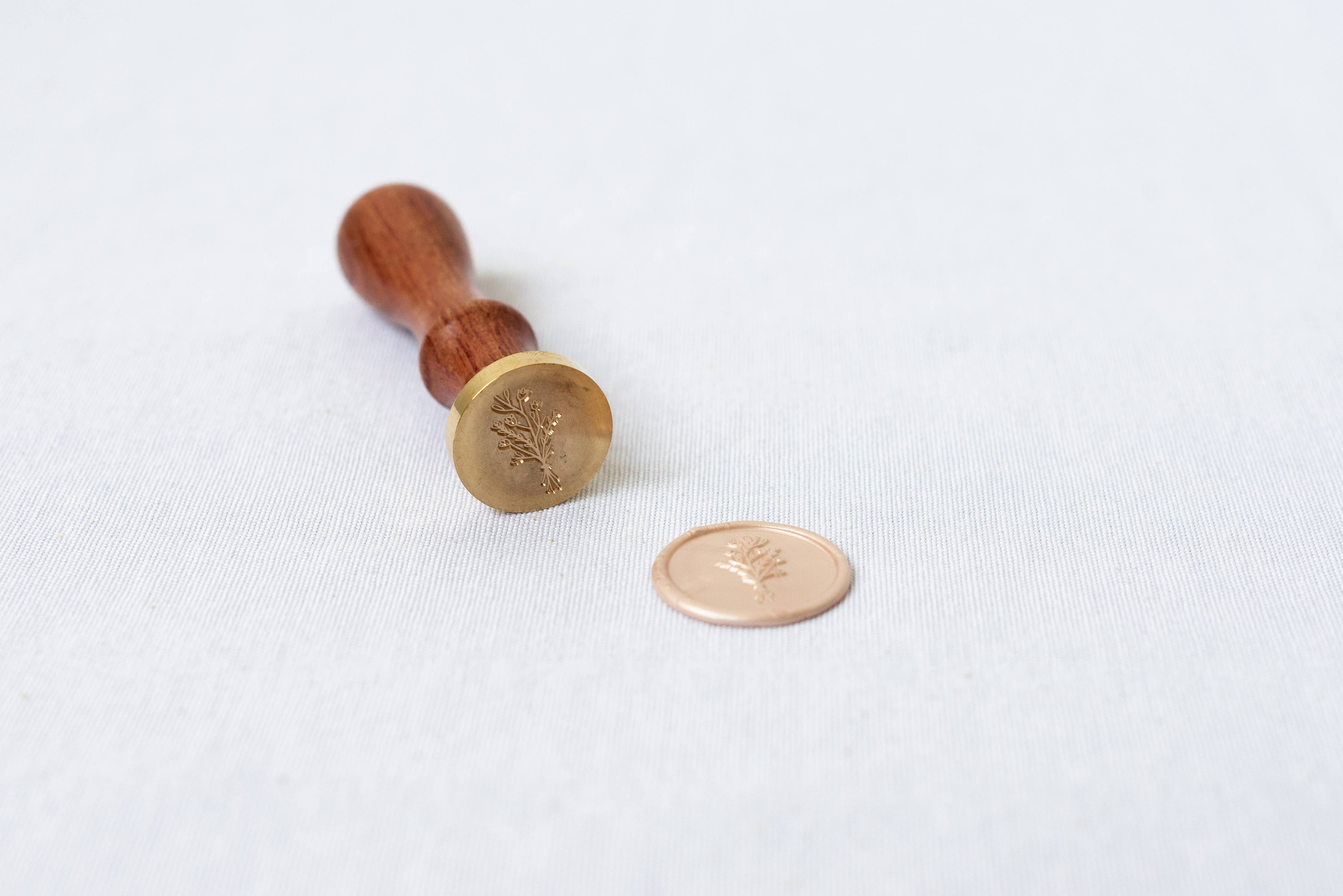 The floral bouquet design is hand drawn, digitalized, then etched into the brass stamp face. This design is unique to Modern Legacy Paper Company, you won't find it anywhere else! Product features: