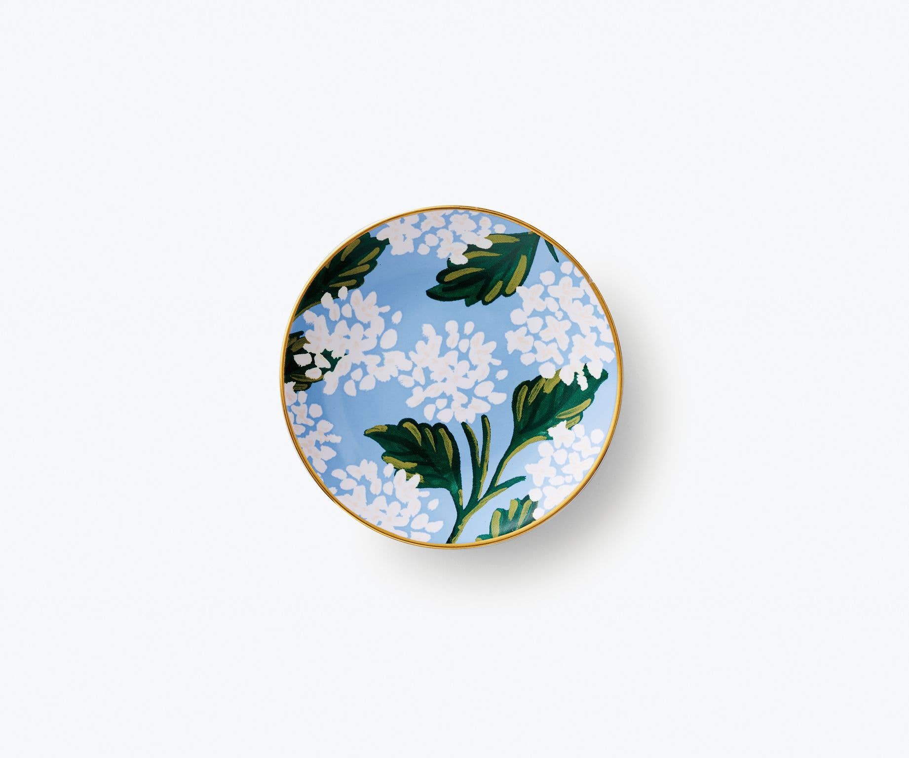 Keep this ring dish by your desk, the sink, or on your nightstand, and keep all your small, special things safe. The porcelain dish features our illustrated Garden Party florals and a metallic gold rim for extra shine. DETAILS - Porcelain - Full-color illustration with metallic gold accents - 4" D - Hand wash - Imported