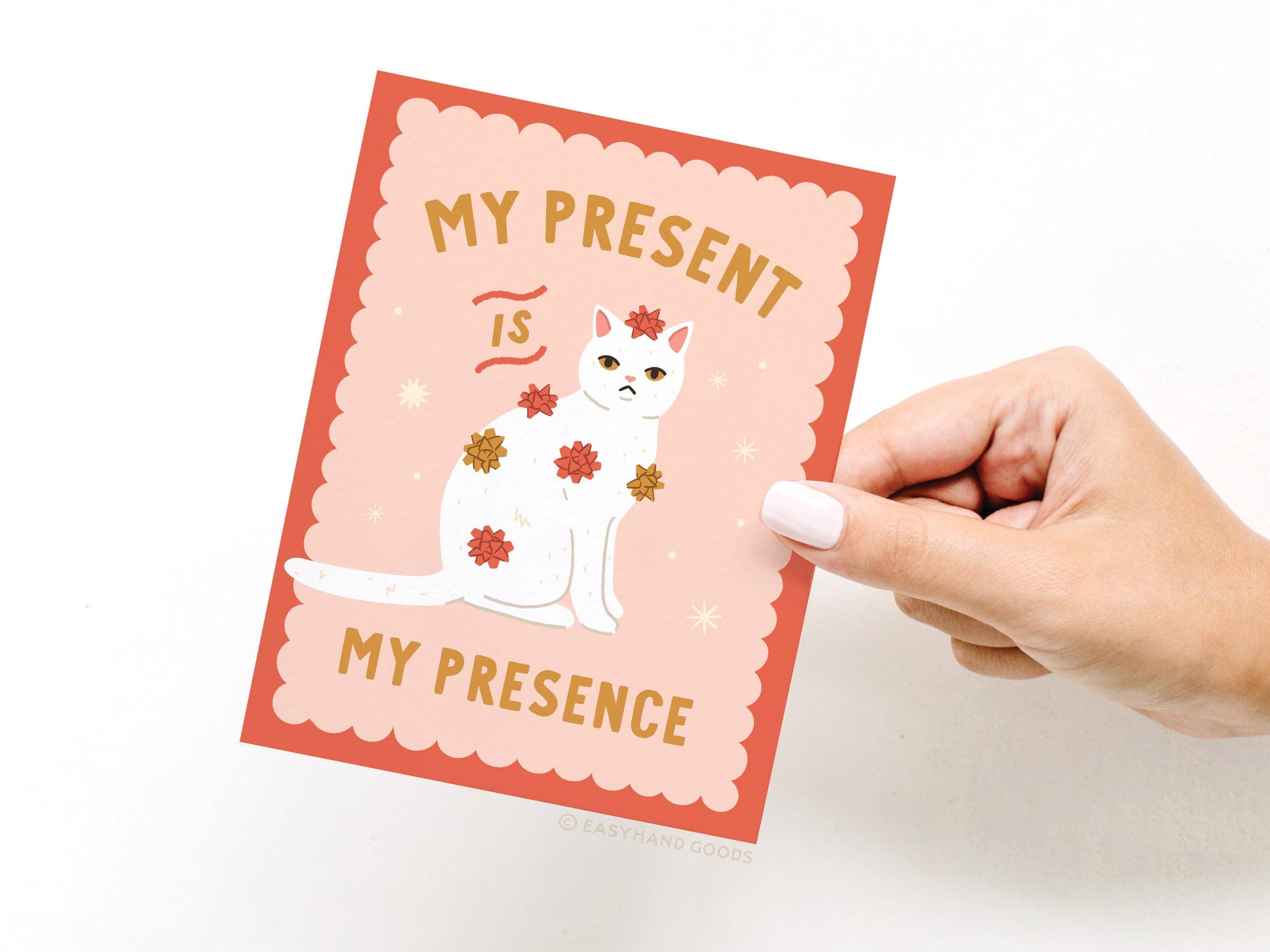 The My Present Is My Presence Cat Greeting Card says what every cat owner already knows – the gift is simply being there.