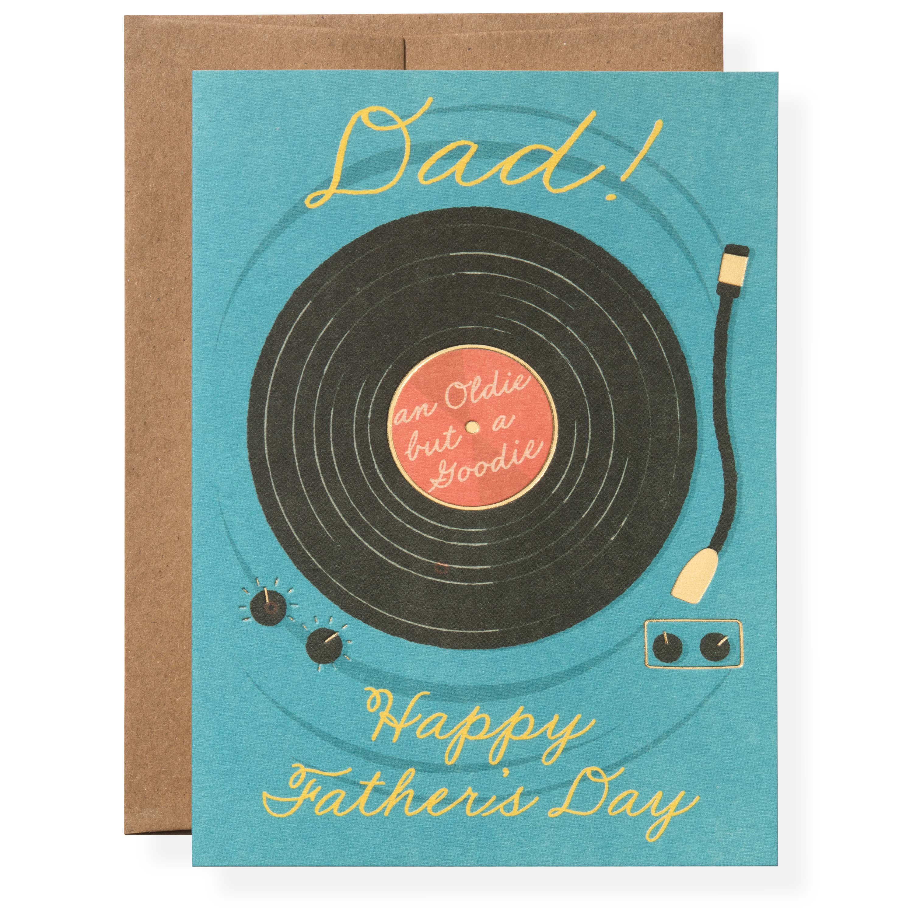 Our Record greeting card is printed and foiled in Memphis, TN. Full color ink printed on natural white paper, letterpress printed in gold foil, and paired with a kraft envelope. Book folded card, blank on the inside.