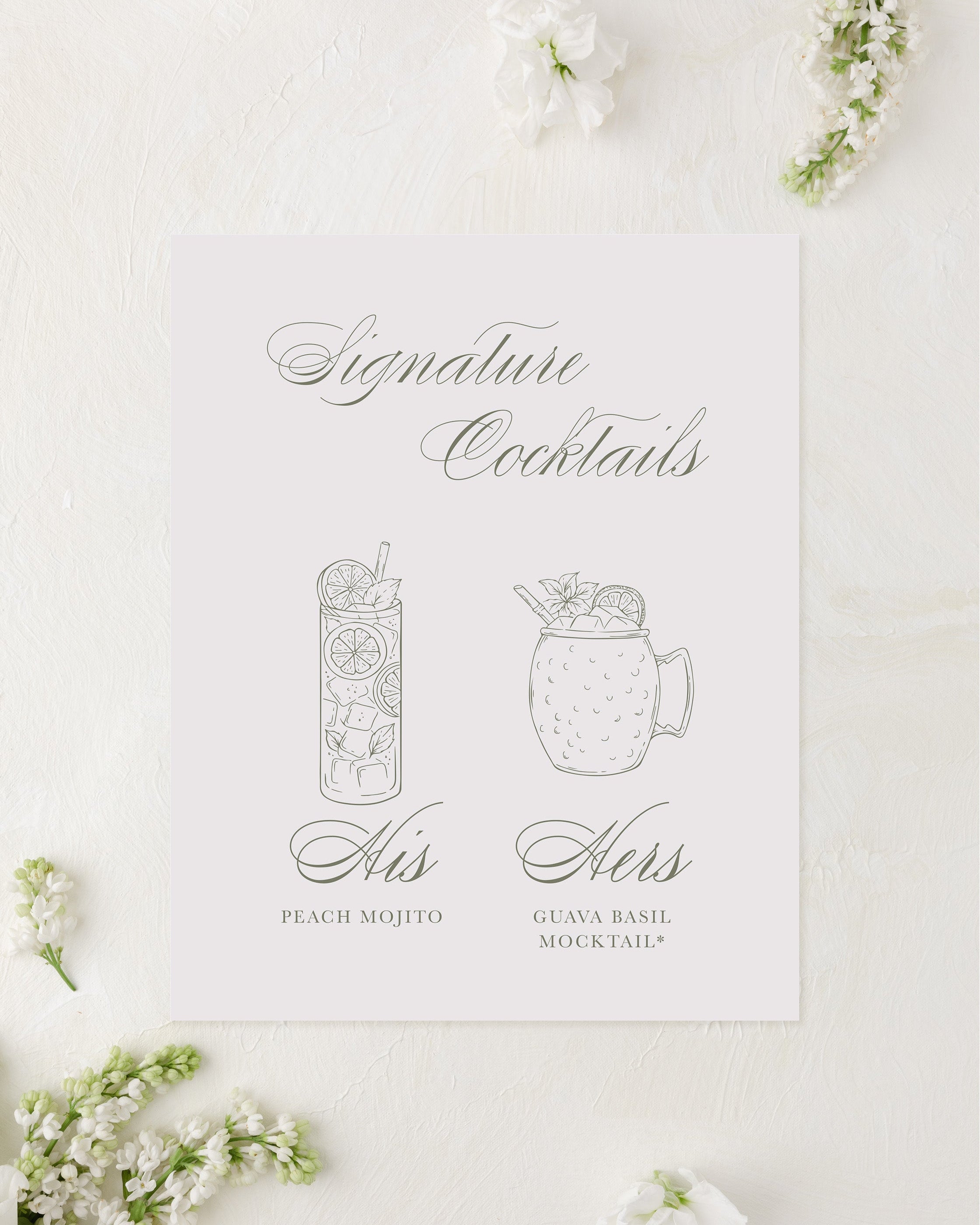 - Select your paper color, print color and submit your cocktail wording and illustrations