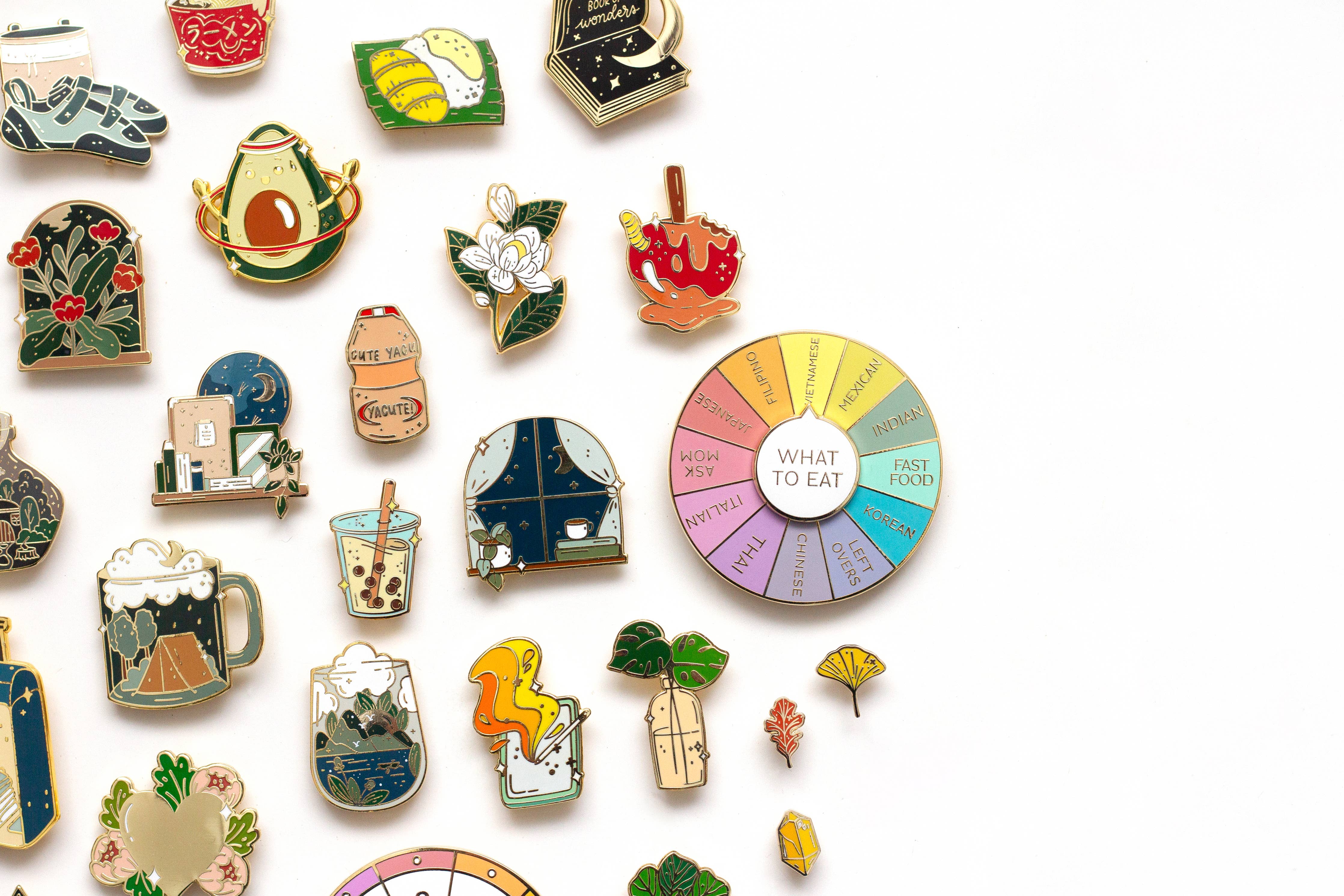 There are so many good foods out there that sometimes it's hard to decide what to go with. I know I am not the only one with this problem, but I have this pin to help me out. Korean? Chinese? Thai? Leftovers? Or just ask Mom? Just flick the spinner and let fate tell you what to eat! An interactive enamel pin to add flair to your collar, jacket, or bag. Perfect for collecting, displaying, or gifting to a friend! The pin is made with hard enamel and polished gold-colored metal plating. It has two posts on the back for extra security, and come with rubber clutch backings.